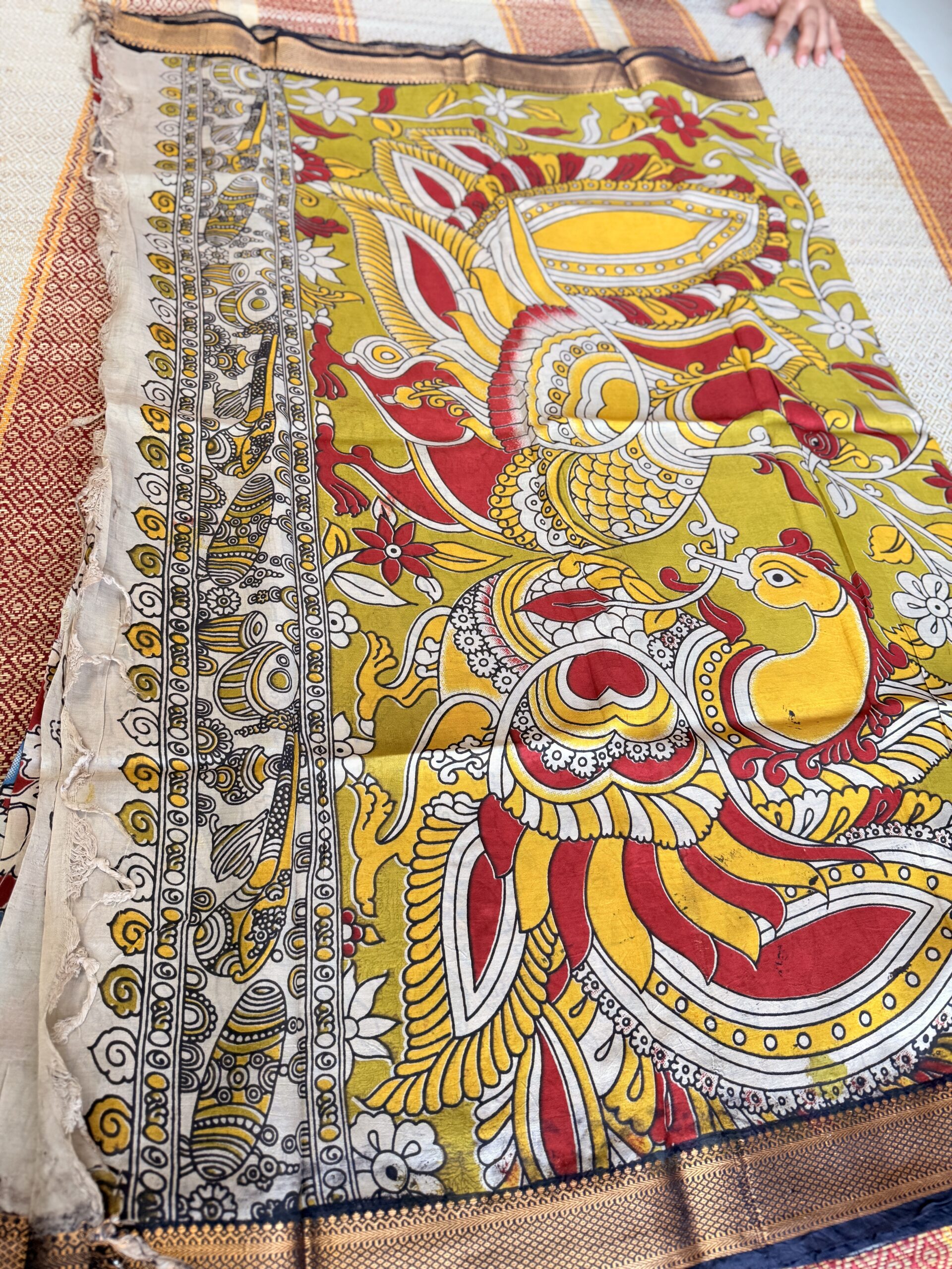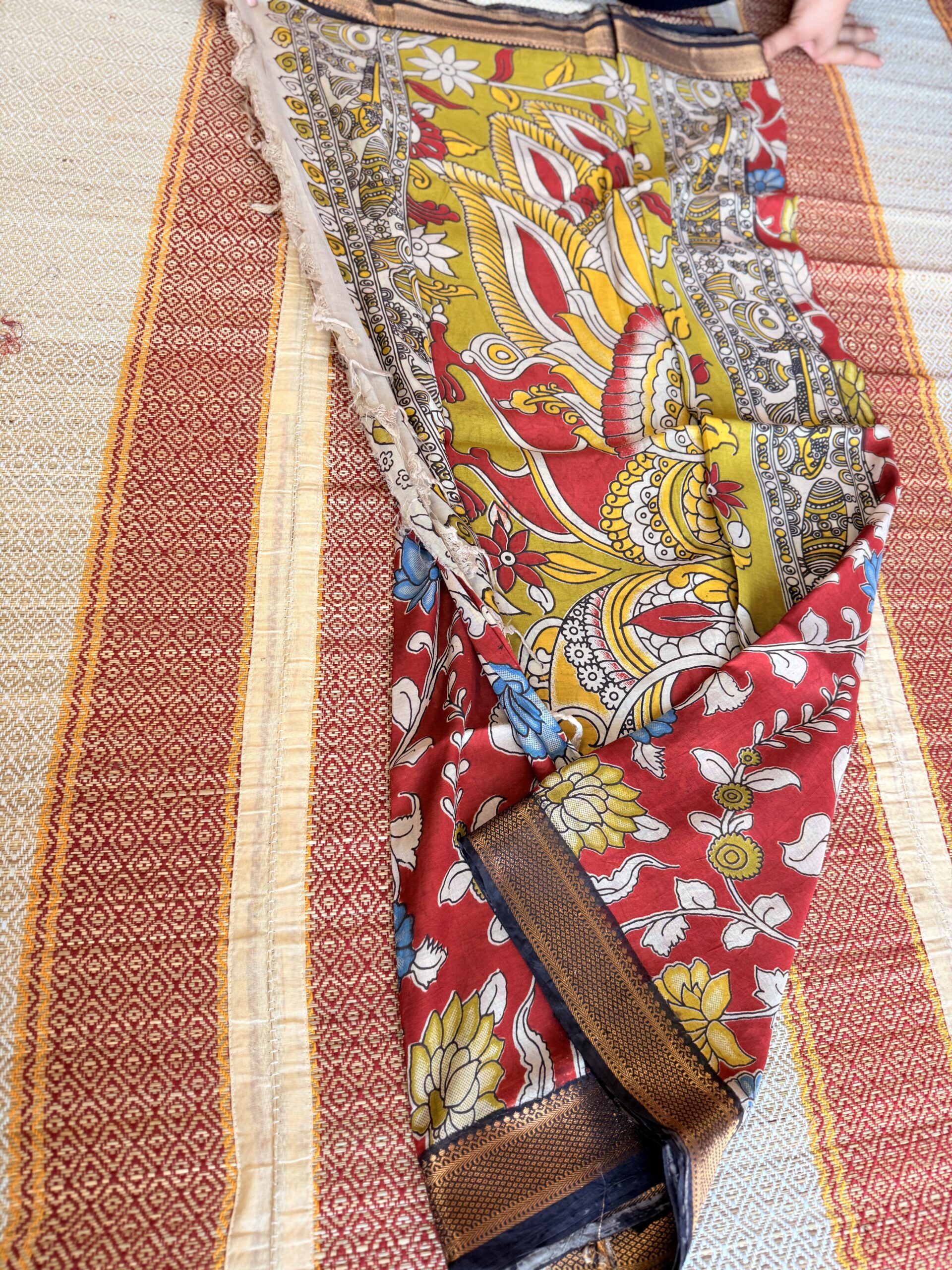 Mangalagiri Silk saree with reddish maroon in big kalamkari pattern