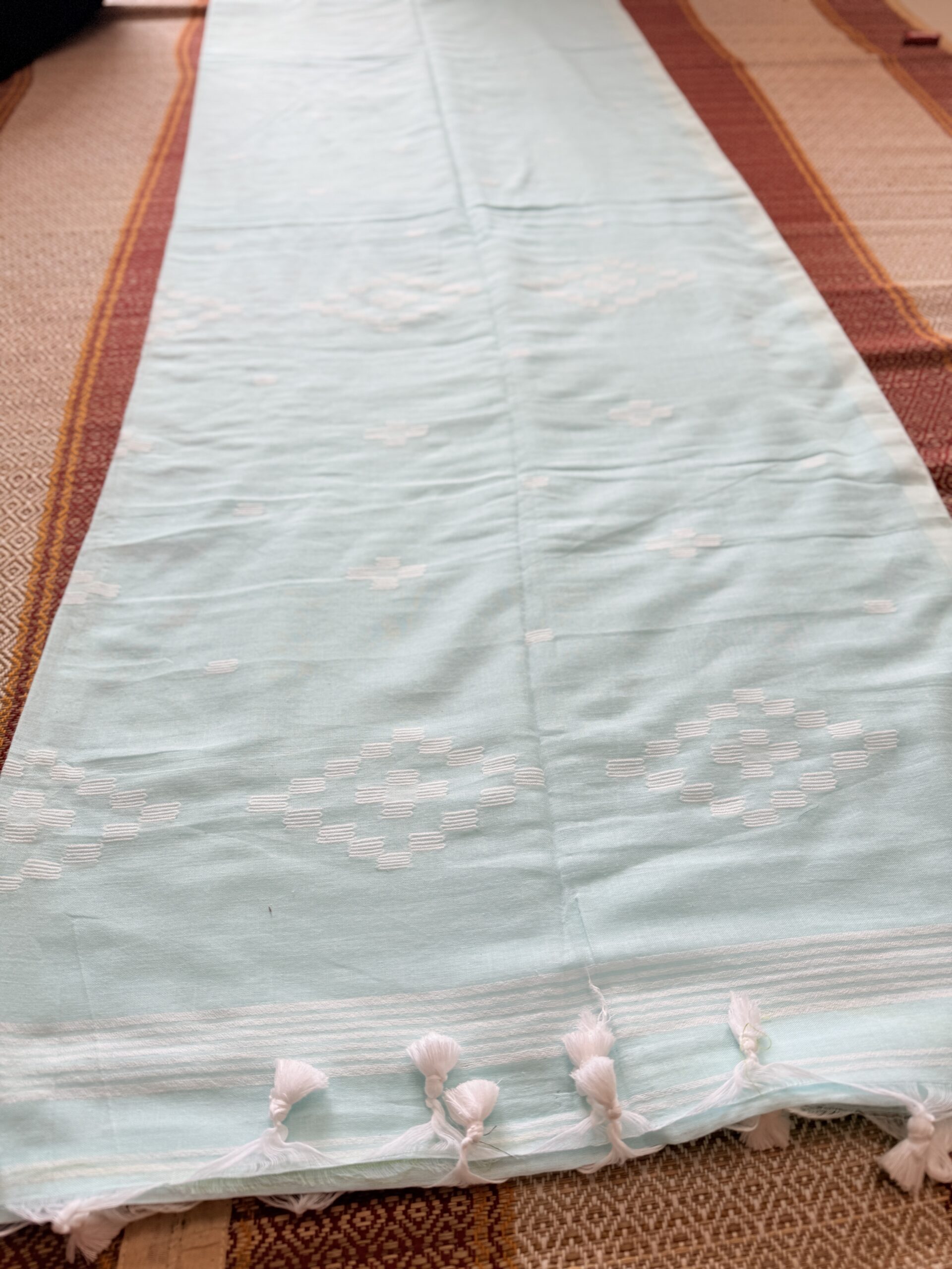 A fine soft cotton with 120 thread count. A summer friendly saree, feels like a skin saree with blouse