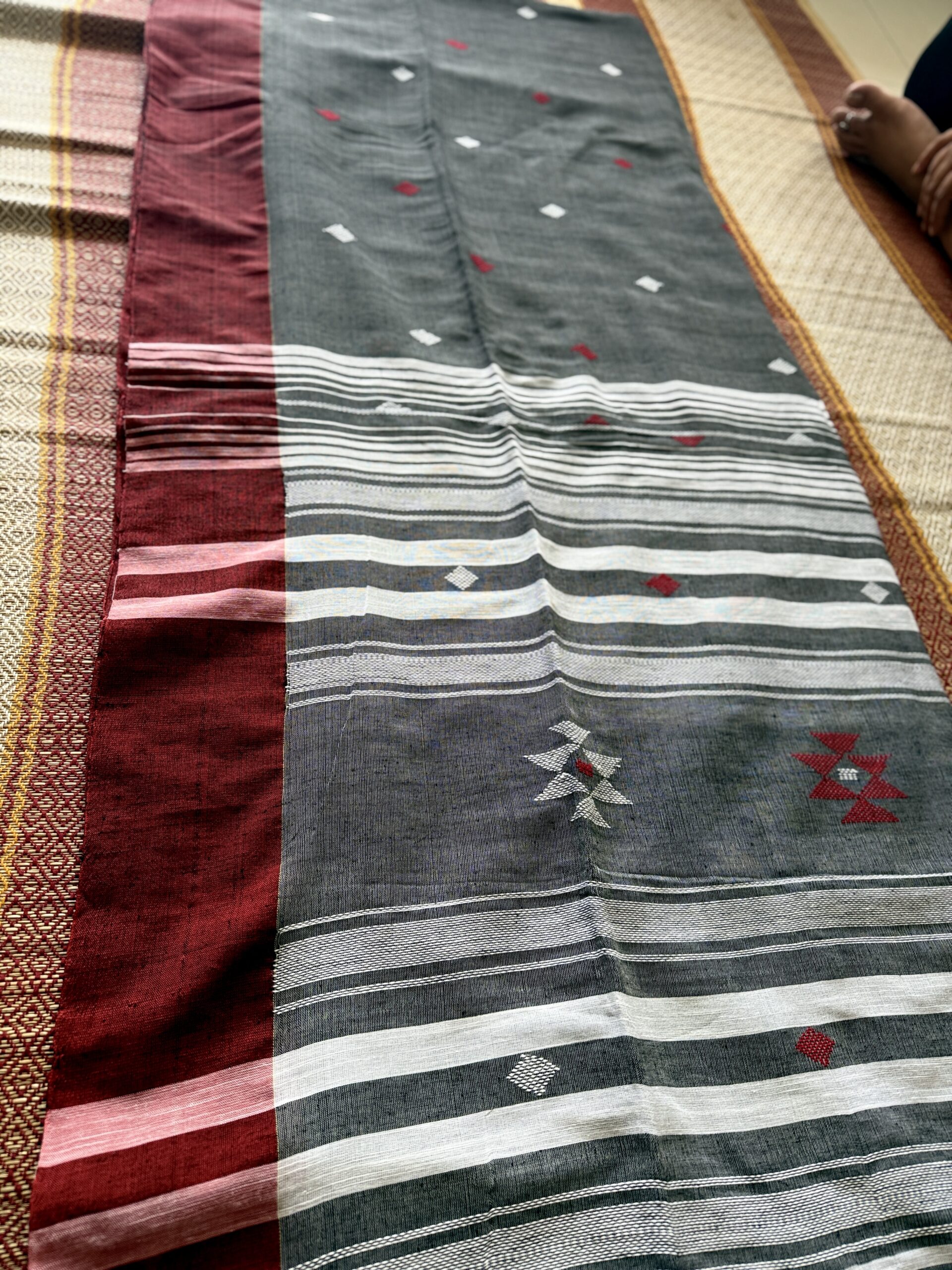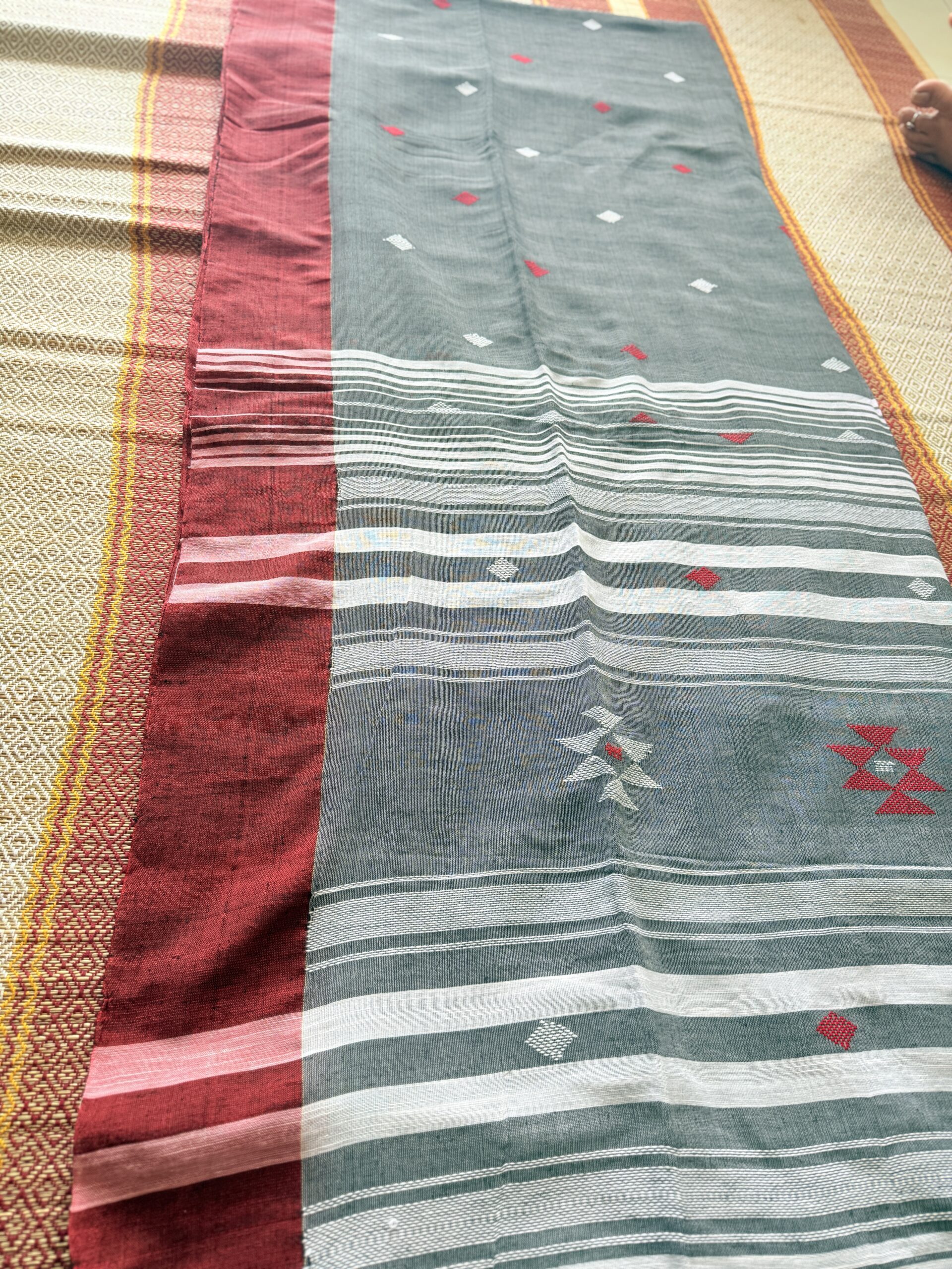 A grey and red border Odisha Khadi kotpad region weaving saree