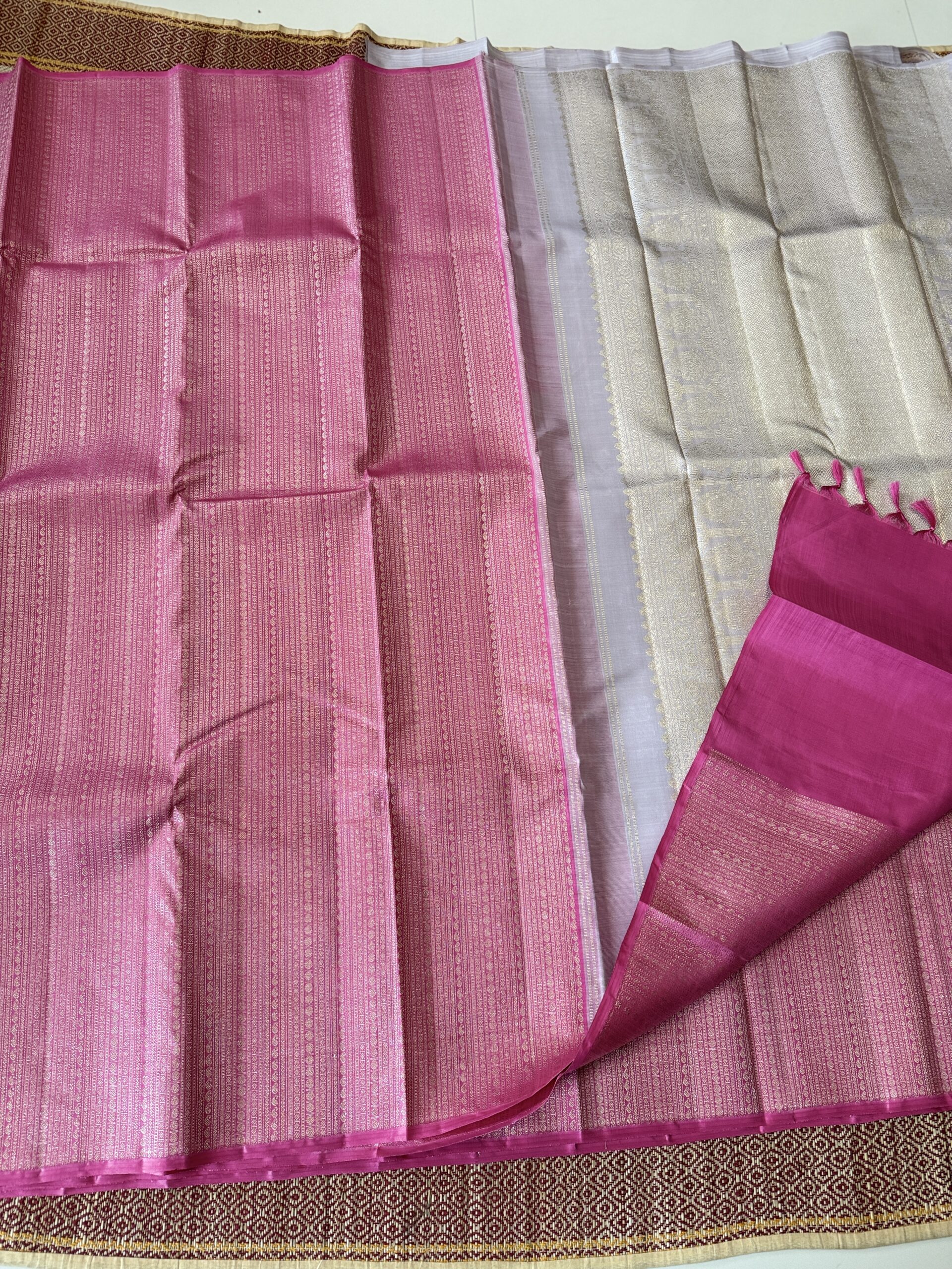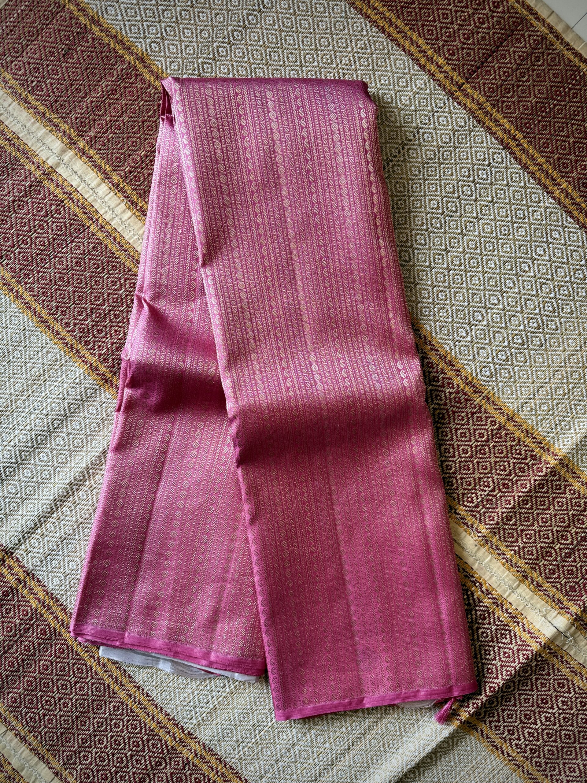 Be the first to review “pink and champagne gold zari borderless”