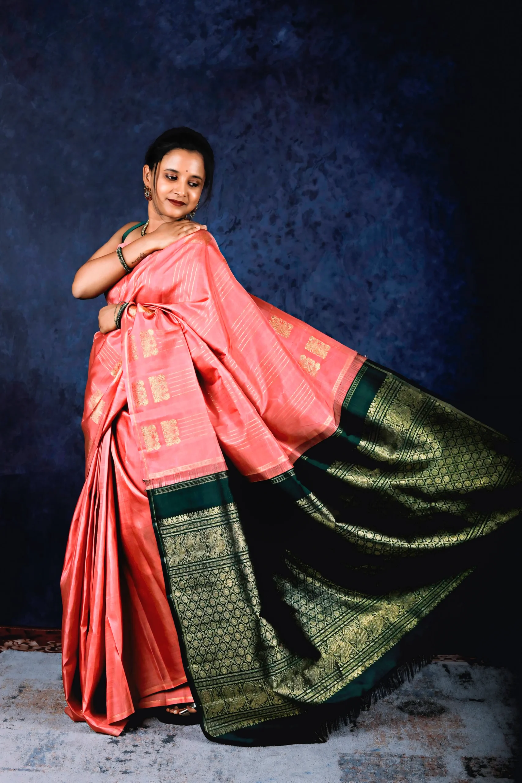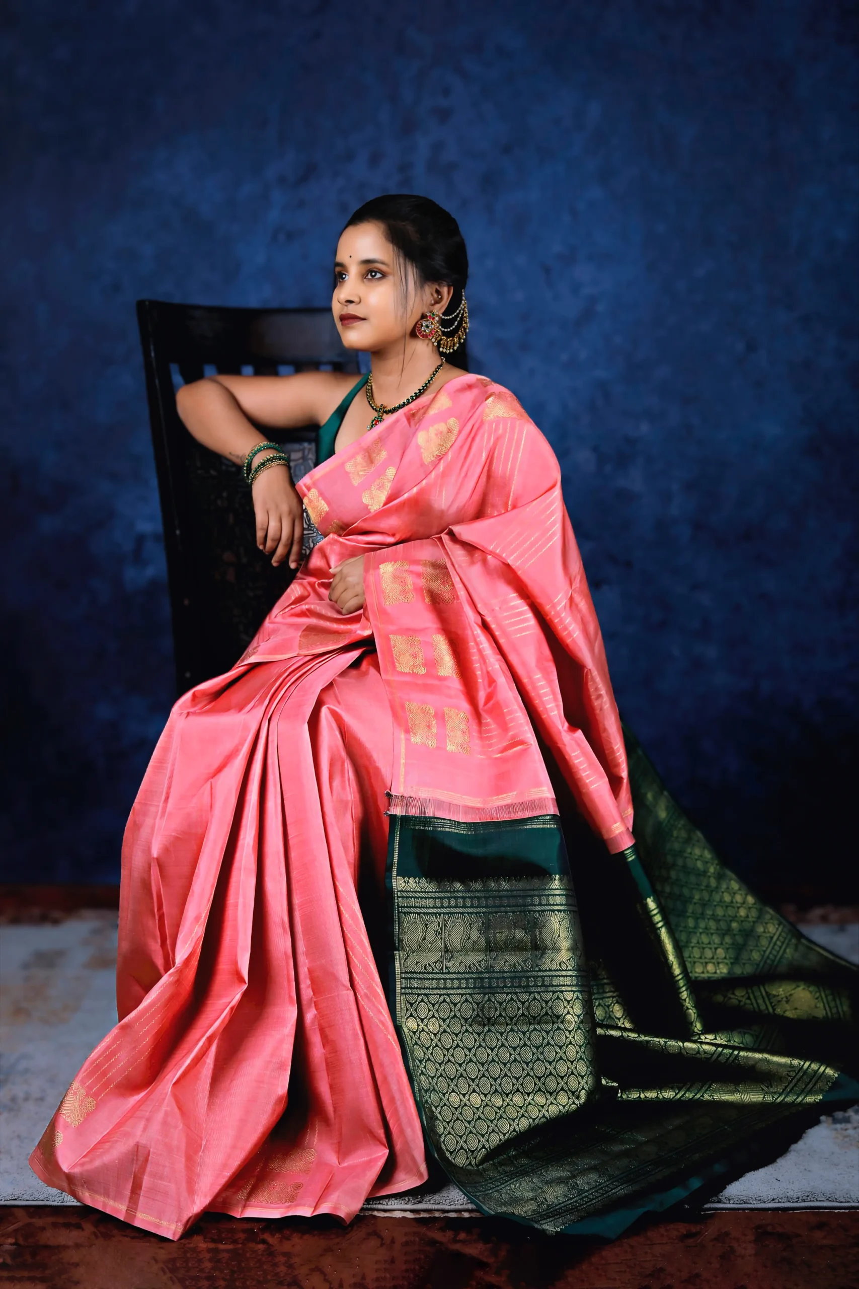 Pure Silk Saree with dark green blouse
